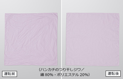 ●「スチームアイロン」コースは、衣類のシワを大幅に低減する機能ですが、衣類の量や素材、一緒に乾燥するものの種類によって仕上がりが異なります。 ●アイロンでプレスしたような効果まではありません。 ●シワが完全になくなるわけではありません。 ●生乾きや乾いた衣類の仕上げとして乾燥運転だけをした場合は、シワをとることはできません。 ●乾燥できないものには使えません(詳しくは、こちらをご覧ください)。