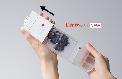 ※1 ●試験依頼先:一般財団法人 ボーケン品質評価機構 ●試験番号:25020009782-1、25020010114-1 ●試験方法:JIS Z 2801(フィルム密着法) ●抗菌方法:樹脂に練り込み ●対象部分:糸くずフィルター(メッシュを除く) ●試験結果:抗菌活性値2.0 以上(抗菌活性値が2.0 以上で抗菌効果があるとされています)
