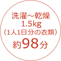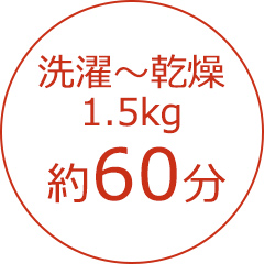 ※1.5kg以下。 ※洗濯~乾燥1.5kg 約155分。 ※標準コースに比べ、使用水量・消費電力量・運転時間が増えます。 ※標準コースに比べ、運転音が上がります。
