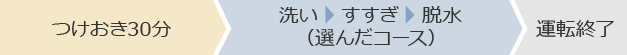これからのつけおき洗いは、洗濯機でラクラク。濡れた衣類を洗濯機に移し替えたり、時間を計ってつけておいたりする手間が省けます。漂白剤などを使う場合も、洗濯機に入れるだけ。また、おしゃれ着コースなど、いろいろな運転コースにプラスして使えるので簡単便利です。
