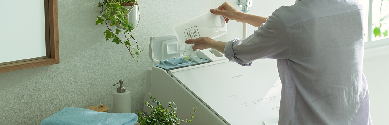 おしゃれ着用液体洗剤や漂白剤、粉末洗剤は、自動投入に対応していません。手動投入口に入れてください。