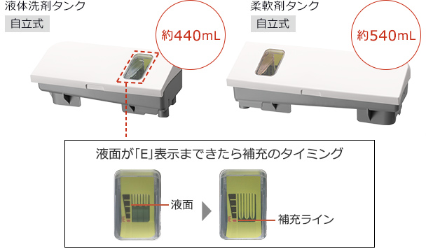 衣類の量や種類、片寄り、室温、据付状態等により、使用水量・消費電力量・運転時間が増減します。