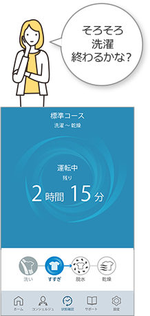 運転終了やお手入れ時期などをプッシュ通知。[お知らせ機能]