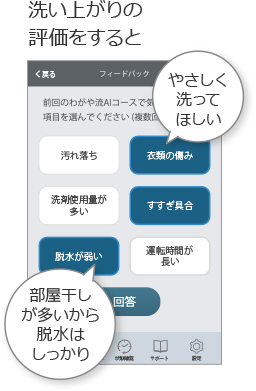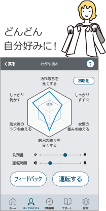 アプリで洗い上がりを評価するたびに、お好みの仕上がりに近づけていきます。