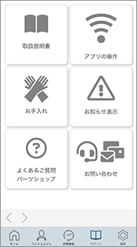 取扱説明書が手元になくても、使い方やお手入れ方法などを確認できます。