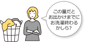 衣類の量や種類、片寄り、室温、据付状態等により、使用水量・消費電力量・運転時間が増減します。