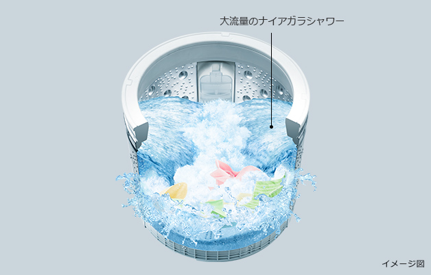たっぷりの水を循環させる[ナイアガラシャワー]や、強い遠心力を生み出す高速回転などの技術で、汚れや繊維に潜んだ洗剤まで徹底的にすすぎます。