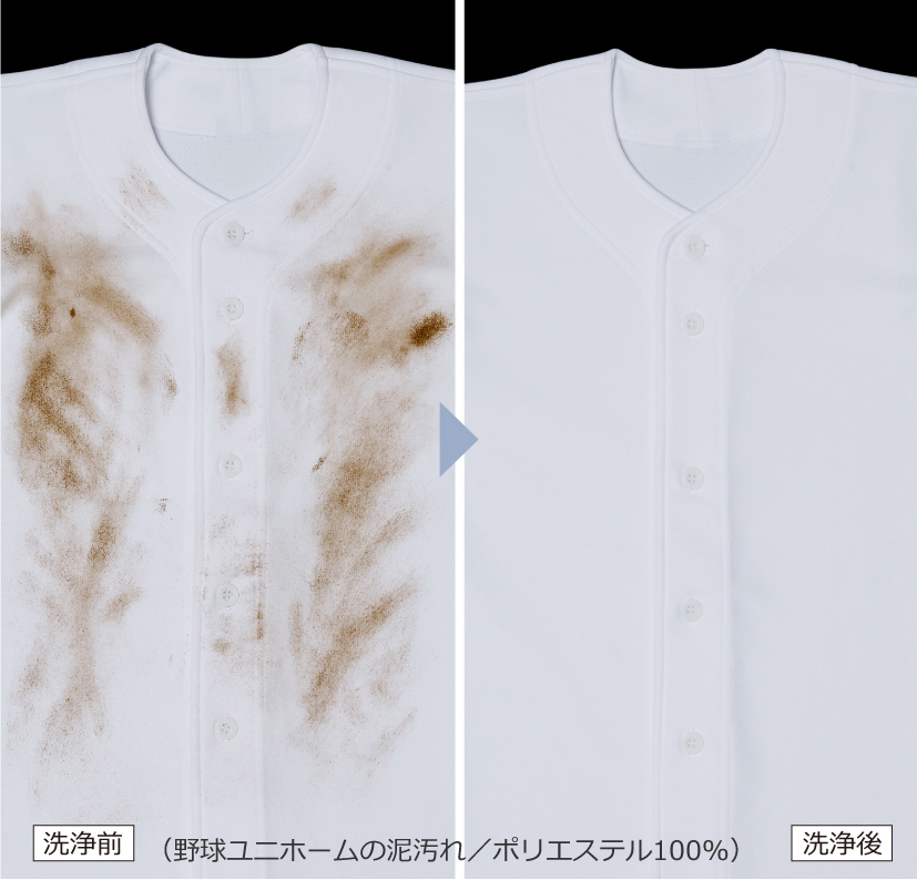 ※当社調べ。2019年モデルBW-X120E(BW-G70Hと同等性能の機種)、洗濯7.2kg(6割負荷)時、標準コースにおいて。衣類の量、汚れ、洗剤、コースの種類などによって効果は異なります。 ※泥汚れは人工的に付着させたものです。