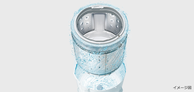 少ない水で溶かして洗剤の力を引き出した、高濃度の洗剤液をすばやく浸透。繊維の奥の汚れまで浮かせて、大流量で洗い流してきれいに。