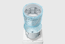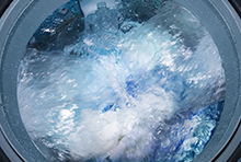 少ない水で洗剤をしっかり溶かして、高濃度の洗剤液をつくり、衣類にすばやく浸透させて汚れを浮かび上がらせます。