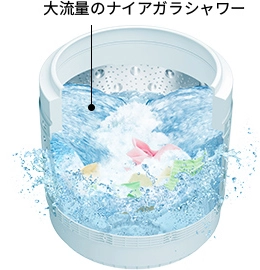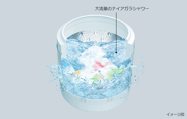 たっぷりの水を循環させる[ナイアガラシャワー]や、強い遠心力を生み出す高速回転などの技術で、汚れや繊維に潜んだ洗剤まで徹底的にすすぎます。