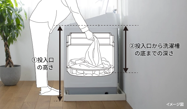 衣類の量や種類、片寄り、室温、据付状態等により、使用水量・消費電力量・運転時間が増減します。