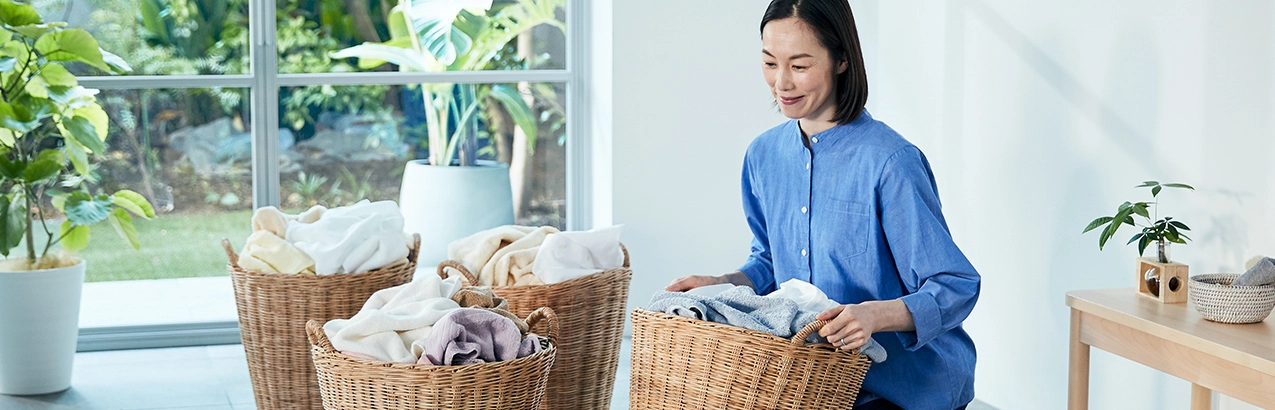 衣類の量や種類、片寄り、室温、据付状態等により、使用水量・消費電力量・運転時間が増減します。