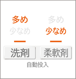 ※洗剤を多め、柔軟剤を少なめに設定したときの操作パネルの表示イメージ