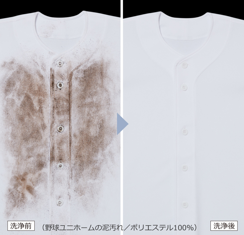 ※当社調べ。2024年モデルBW-X120K(BW-X120Mと同等性能の機種)、洗濯7.2kg(6割負荷)時、標準コースにおいて。衣類の量、汚れ、洗剤、コースの種類などによって効果は異なります。※泥汚れは人工的に付着させたものです。