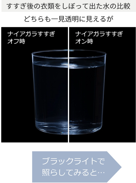 すすぎ後の衣類をしぼって出た水の比較