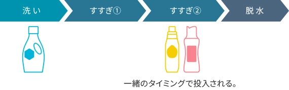 「すすぎ剤(レノアクエン酸in)」コースは、柔軟剤 自動投入と手動投入を使用して運転します。