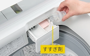 自動投入タンクに柔軟剤を入れておく。